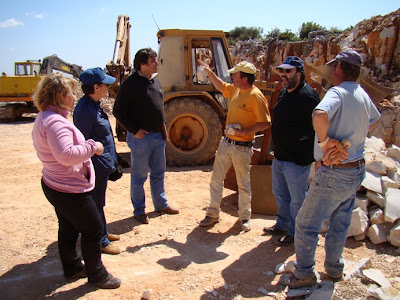 Mas a tarde compensou - a visita ao futuro Monumento Natural das Pegadas de Dinossáurios de Vale de Meios foi excelente (os dois funcionários do Parque, como habitualmente, foram excelentes a explicar, simpáticos e merecem nota 20...). O local está bem preparado para visitas (só não se vê bem a placa de entrada) e as pedreiras em laboração (visitámos uma, onde tirámos fotos a alguns fósseis) ajudam a conservar e preservar o local. As pegadas, de terópodes, são excelentes (vimos contramoldes, noutro local, melhores do que as pegadas similares do Cabo Mondego, que já aqui publicámos) e há ainda um trilho de saurópodes.